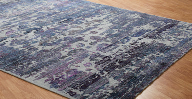Indigo/WisteriaHand KnottedWool & Silkette AVAILABLE SIZES 2X3 3X5 4X6 6x9 8x10 9x12 10x14 12x15 RUNNER 2'6"x10'