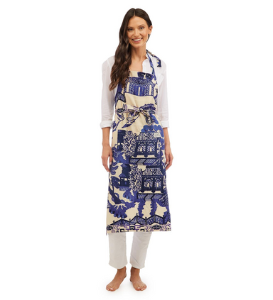 White Apron with a decorative graphic 36" long, 65% polyester, 35% cotton apron with 2 large pockets Designed, packaged and printed in the USA  Ma...