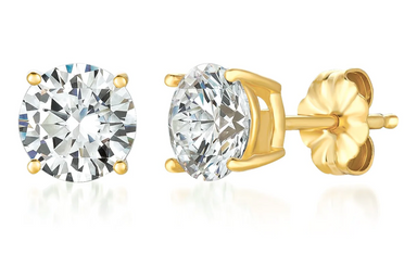 Dimensions: 8.89 mm Wide Finished In 18kt Yellow Gold .925 Precious Sterling Silver 6.00 Carat Total Weight Carat total weight based on Diamond e...
