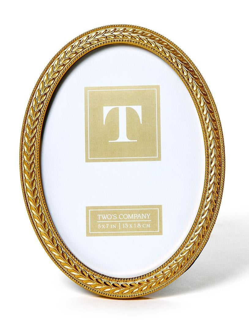 LAUREL WREATH GOLD OVAL PHOTO FRAMES - 5 3/4" W x 1/2" D x 7 3/4" H