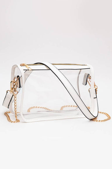 Clear Rectangle Stadium Concert Crossbody Bag 9.5" x 3" x 6" Strap 30" Detachable Chain 46" Detachable Made in China
