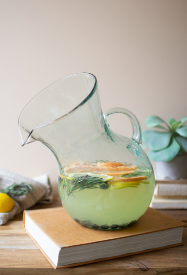 This will be your favorite pitcher and your favorite vase! Equally suited to either endeavor, our glass tilted pitcher is hand-blown by Colombian a...