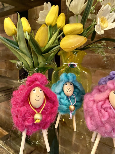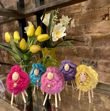 Assorted 5 inch Wooly Sheep. Sold Individually. Purple, Light Pink, Hot Pink, Yellow, Teal
