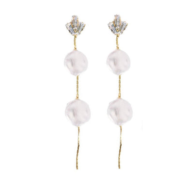 Add an elegant touch to your holiday ensemble with these stunning skinny gold, pearl and diamond swingy drop earrings. These earrings feature pearl...
