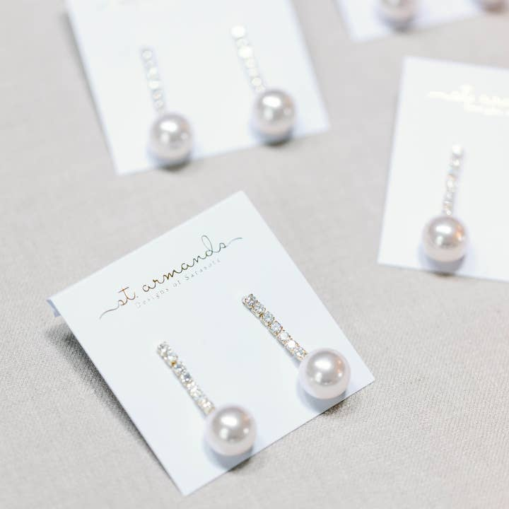 Small Swingy Pearl and Diamond Statement Drop Earrings